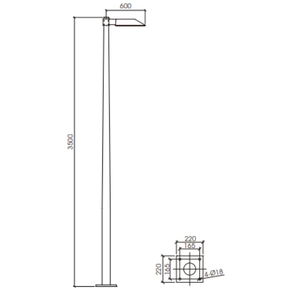 3500mm height, for outdoor installation. 360° light emission. Matt