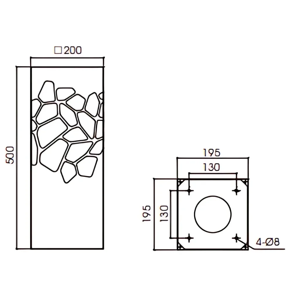 500mm height bollard, for outdoor installation. 360° light emission.