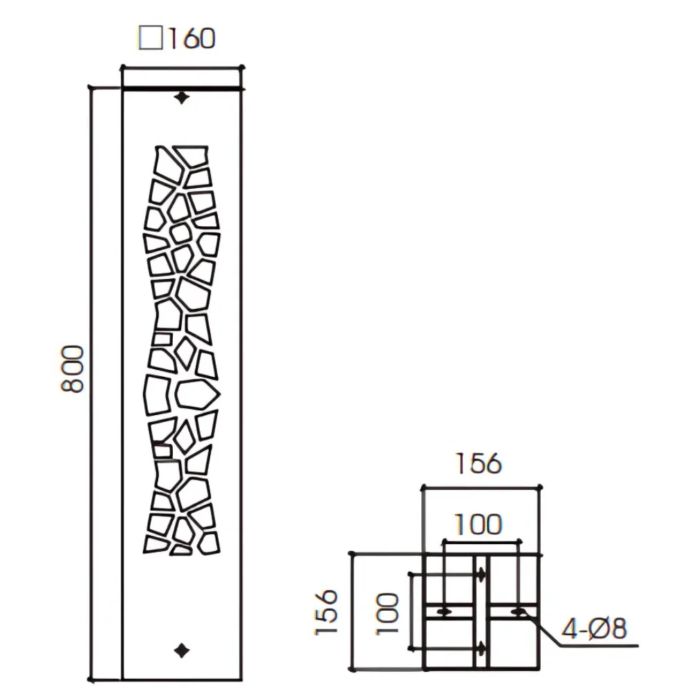 800mm height bollard, for outdoor installation. 360° light emission.